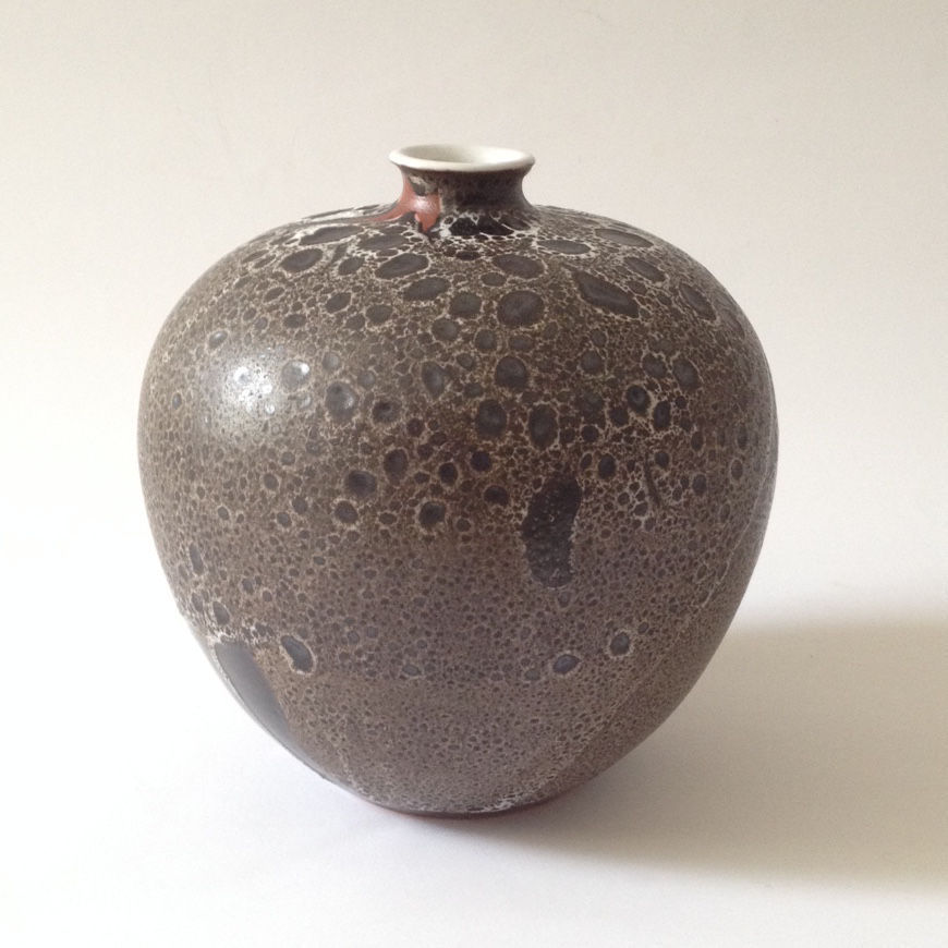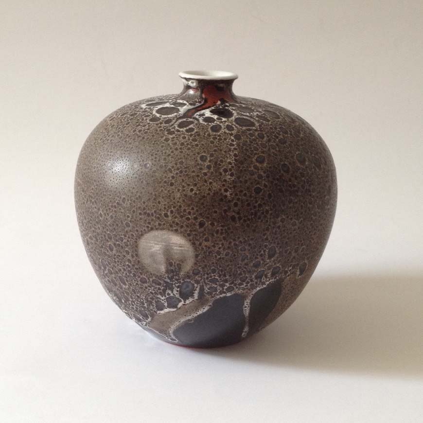 This is the most beautiful vase I know of Clary von Ruckteschell-Truëb. It has a gorgeous crater-like glaze that includes unglazed areas as if they were glazes themselves. The highlight is a roundish, partly pink spot on the side of the vase.