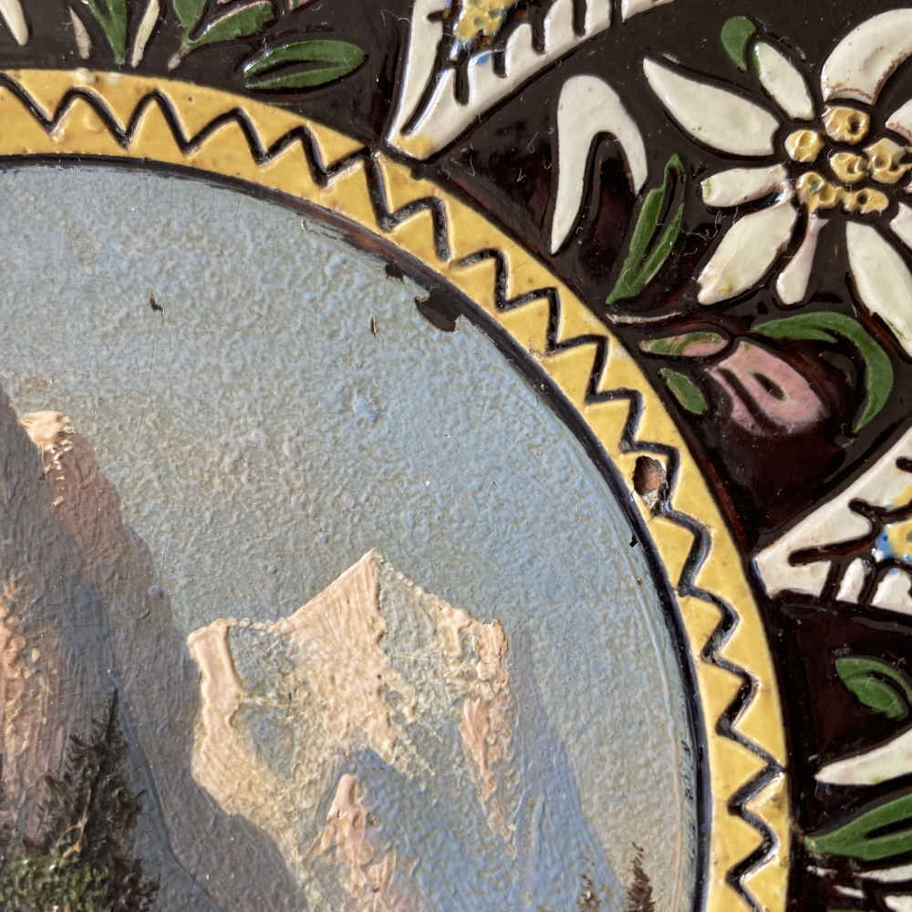 MUSÉE CÉRAMIQUE – Thun Picture Plate Wellhorn Mountain and Wetterhorn Peak – Thun Majolica (Thoune)