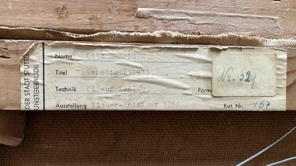 Signature: unsigned. On the reverse is a label bearing information from the Stuttgart City Gallery regarding the 1964 exhibition dedicated to Hermann Pleuer and Otto Reiniger.
