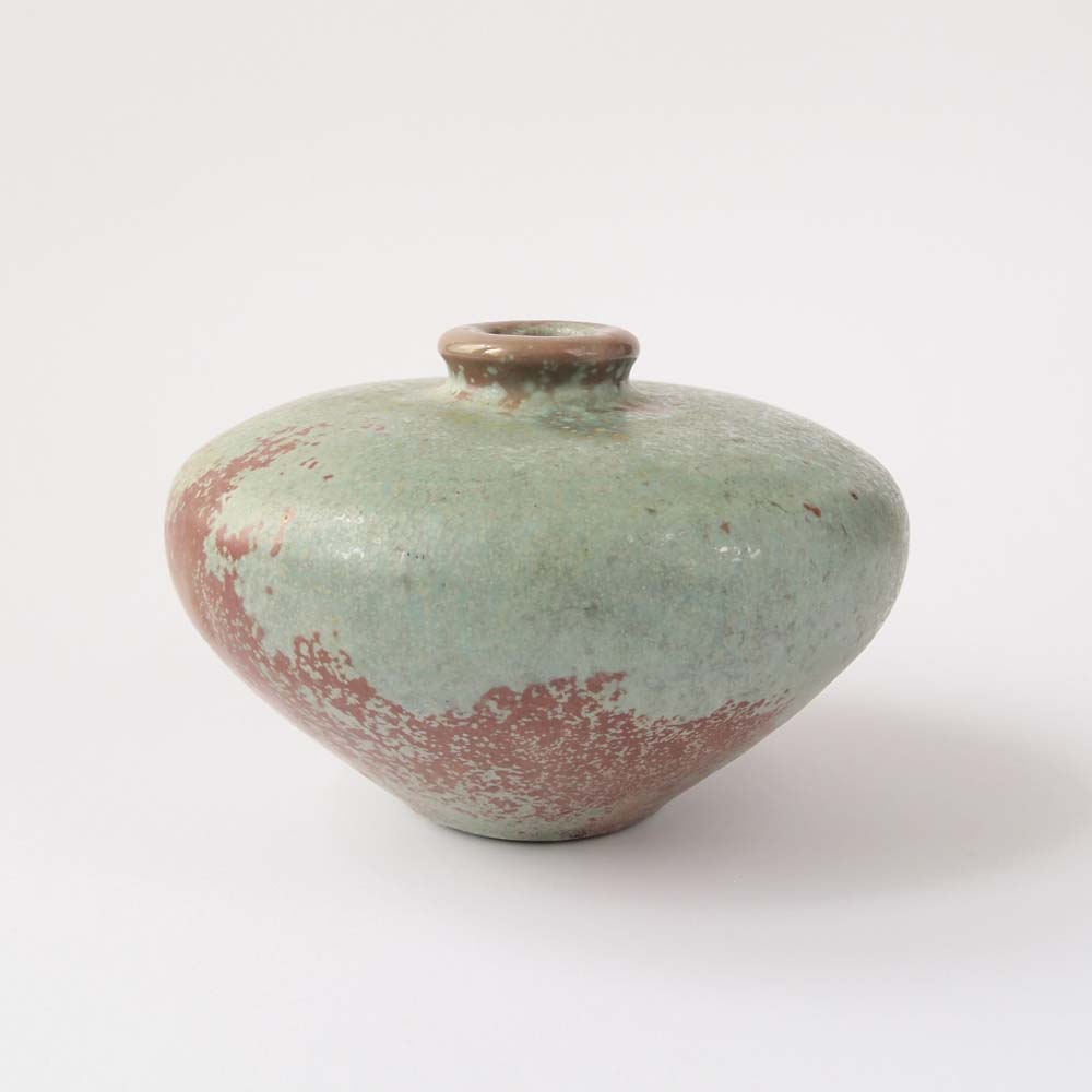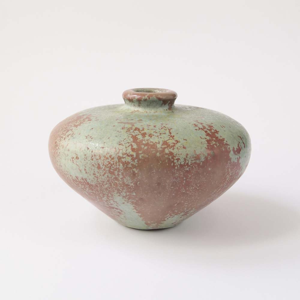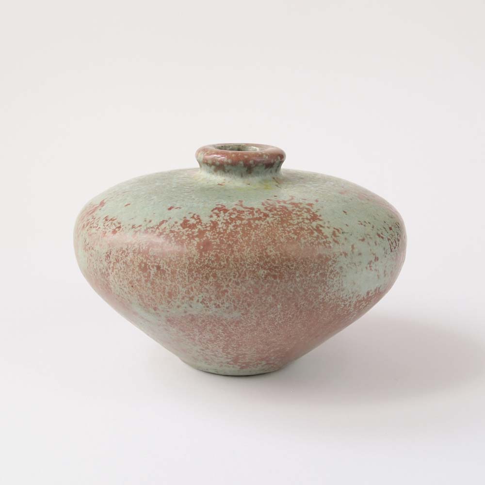 Thrown ceramic vase from the studio community Stephan Erdös and Ida Erdös-Meisinger. Since Ida Erdös was mainly engaged with the production of ceramic sculptures, especially figures, this vase is most probably made by her husband Stephan Erdös. The potter Stephan Erdös concentrated exclusively on vessel ceramics and carried out glaze experiments [1].