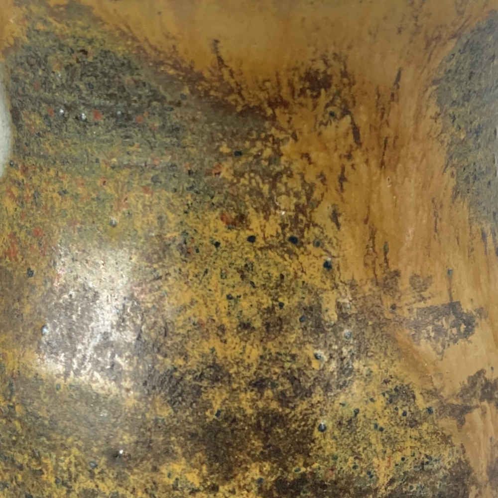 Estado: un desconchado de tamaño medio y dos burbujas de esmalte reparados con técnica kintsugi (refinamiento con oro auténtico).