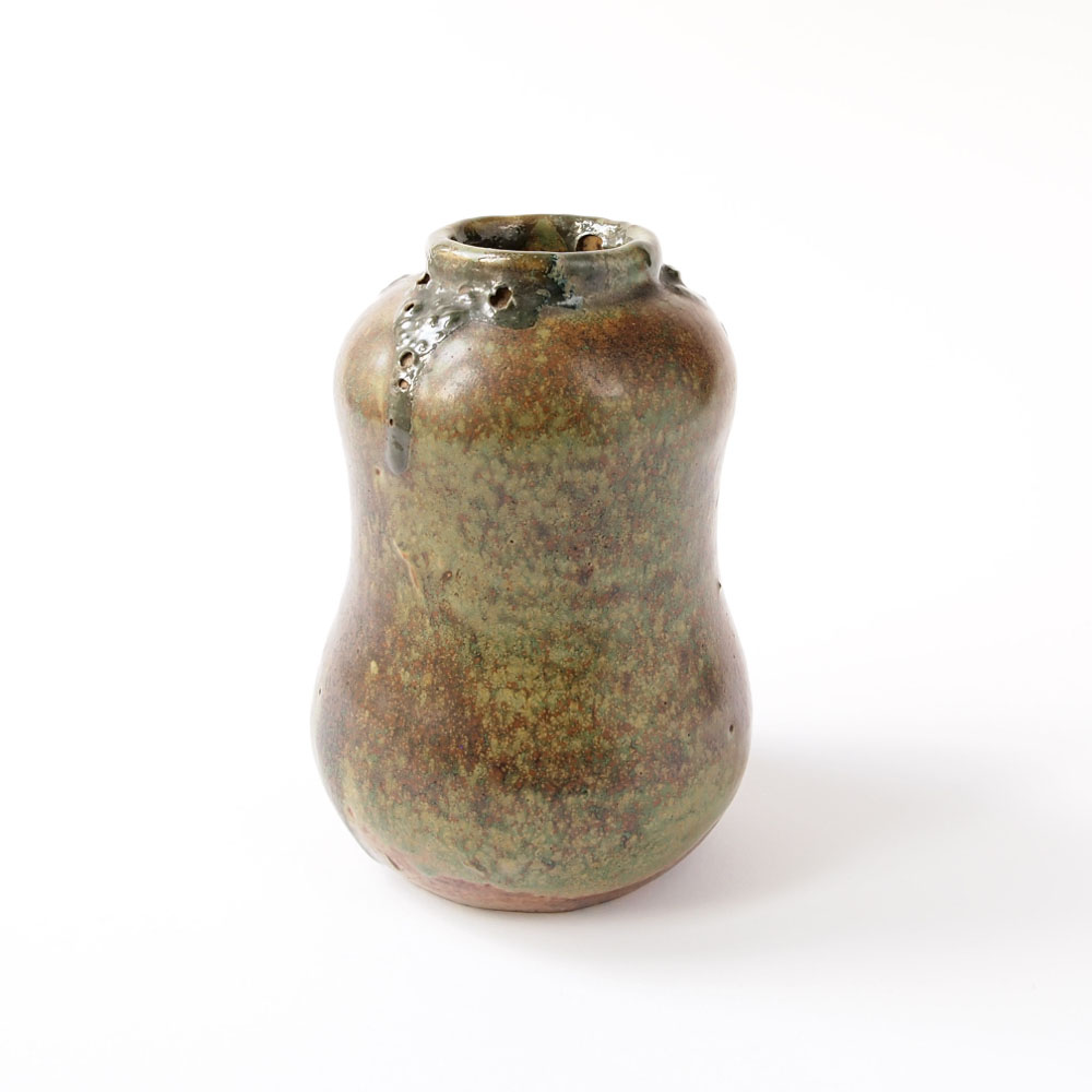 Superficie: marrón, vidriado verde con desbordamiento de vidrio verde oscuro