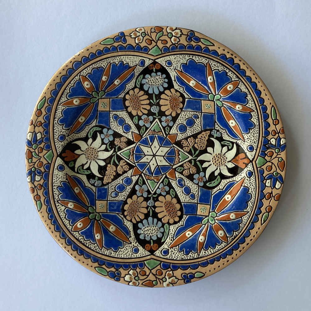 Johann WANZENRIED (* 1847, † 1895) – Plato de postre con edelweiss – Thun mayólica (Thoune)
