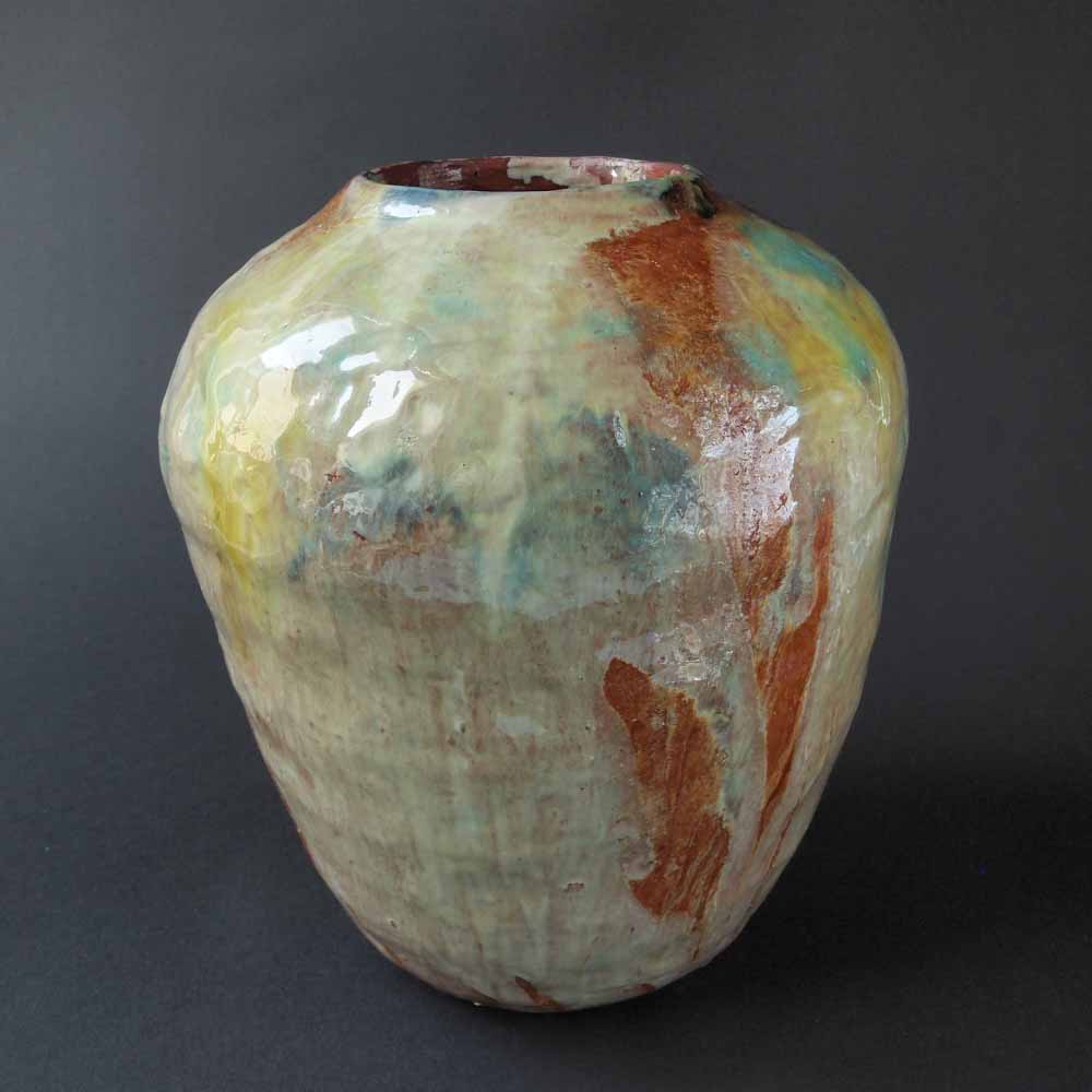 Gebaute Vase aus Keramik von der Keramikerin Felicitas Klatte. Im Katalog des Hetjens-Museums Düsseldorf, Klinge, Ekkart (Bearbeiter): Deutsche Keramik des 20. Jahrhunderts, Band I, Düsseldorf 1975, S. 304-306, ist nicht eine einzige Gefäßkeramik von Felicitas Klatte abgebildet [1]. Ich gehe daher davon aus, dass Vasen von Felicitas Klatte eher selten sind. Die Keramik-Vase hier ist vermutlich in der Zeit zwischen 1933 und 1956 entstanden.