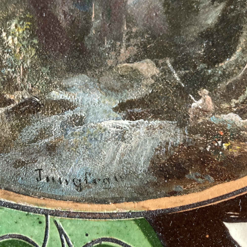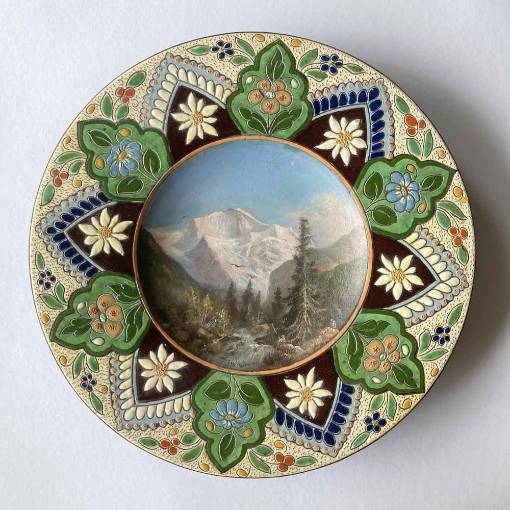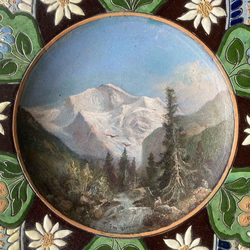 Johann WANZENRIED (* 1847, † 1895) – Plateau mural avec peinture à l’huile – Jungfrau – Thoune Majolique