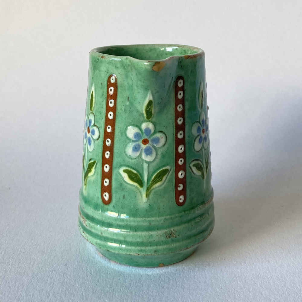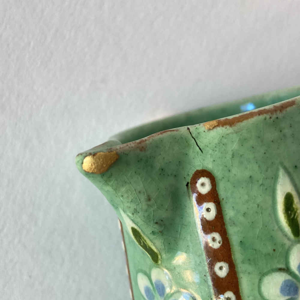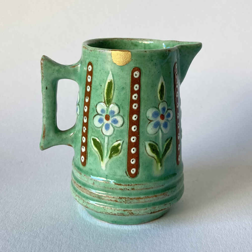Johann WANZENRIED (* 1847, † 1895) – Pot à lait avec réparation de kintsugi – Thoune Majolique