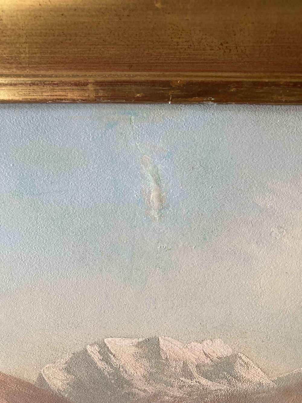 État : retouche en haut à gauche du centre dans le ciel ; le dos du tableau est taché et présente des traces d’enlèvement de colle.