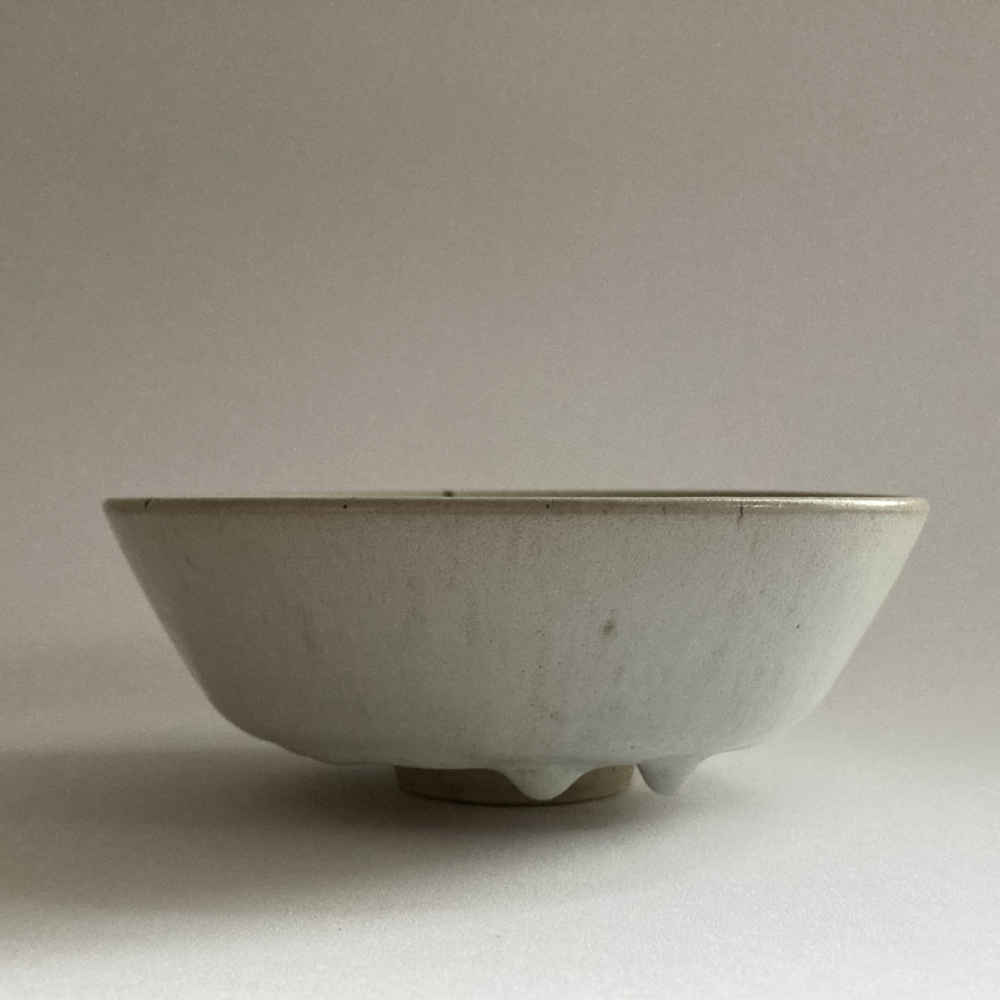 Cette coupe en céramique du céramiste de studio suisse Mario Mascarin est un cas évident d’understatement suisse. La coupe semble si simple en blanc, mais elle est très spéciale, tant par sa forme que par la formation de gouttes sur l’émail.