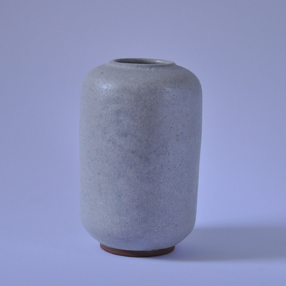 Handgedrehte zylinderförmige Vase von Gerhard Meisel. Von 1949 bis 1968 arbeitete Gerhard Meisel in seiner eigenen Werkstatt im brandenburgischen Stahnsdorf [1].