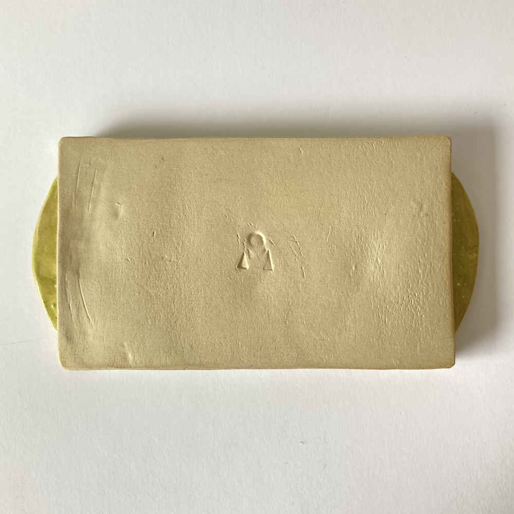 Il manico del coperchio di questo burriera è una mucca con smalto Tenmoku con effetti blu e bianchi. Questa burriera in ceramica è realizzata a mano. L’artista Mila Vázquez Otero lavora senza stampi e modella ogni pezzo di ceramica singolarmente a mano; ognuna di queste burriere in ceramica fatte a mano è quindi un pezzo unico.