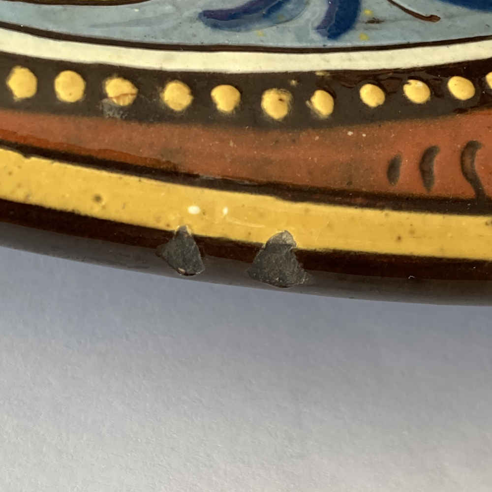 Zustand: eine grössere und mehrere kleine Abplatzungen hinten sowie mehrere Abplatzungen an und auf dem Rand, insgesamt ansehnlicher Zustand
