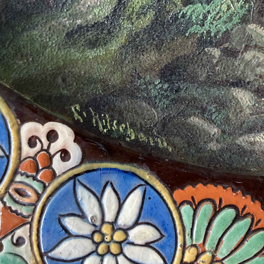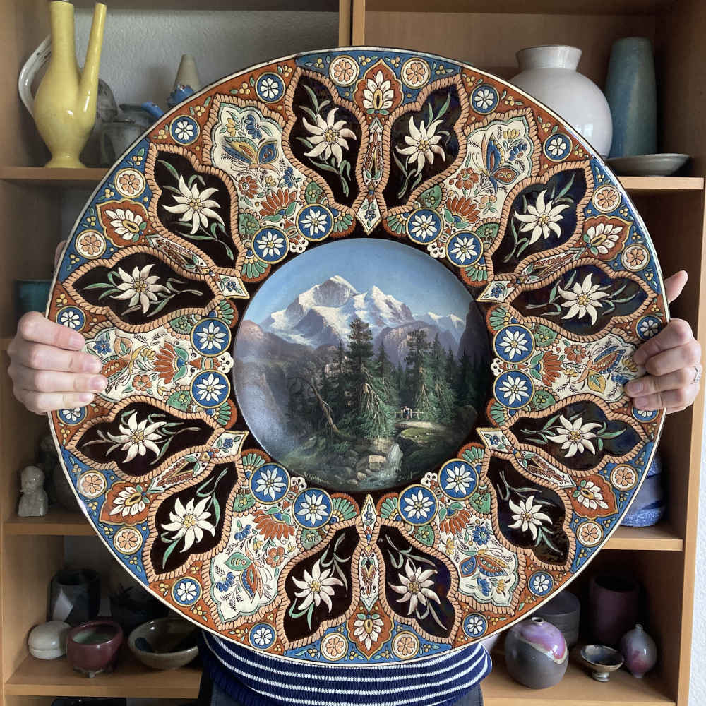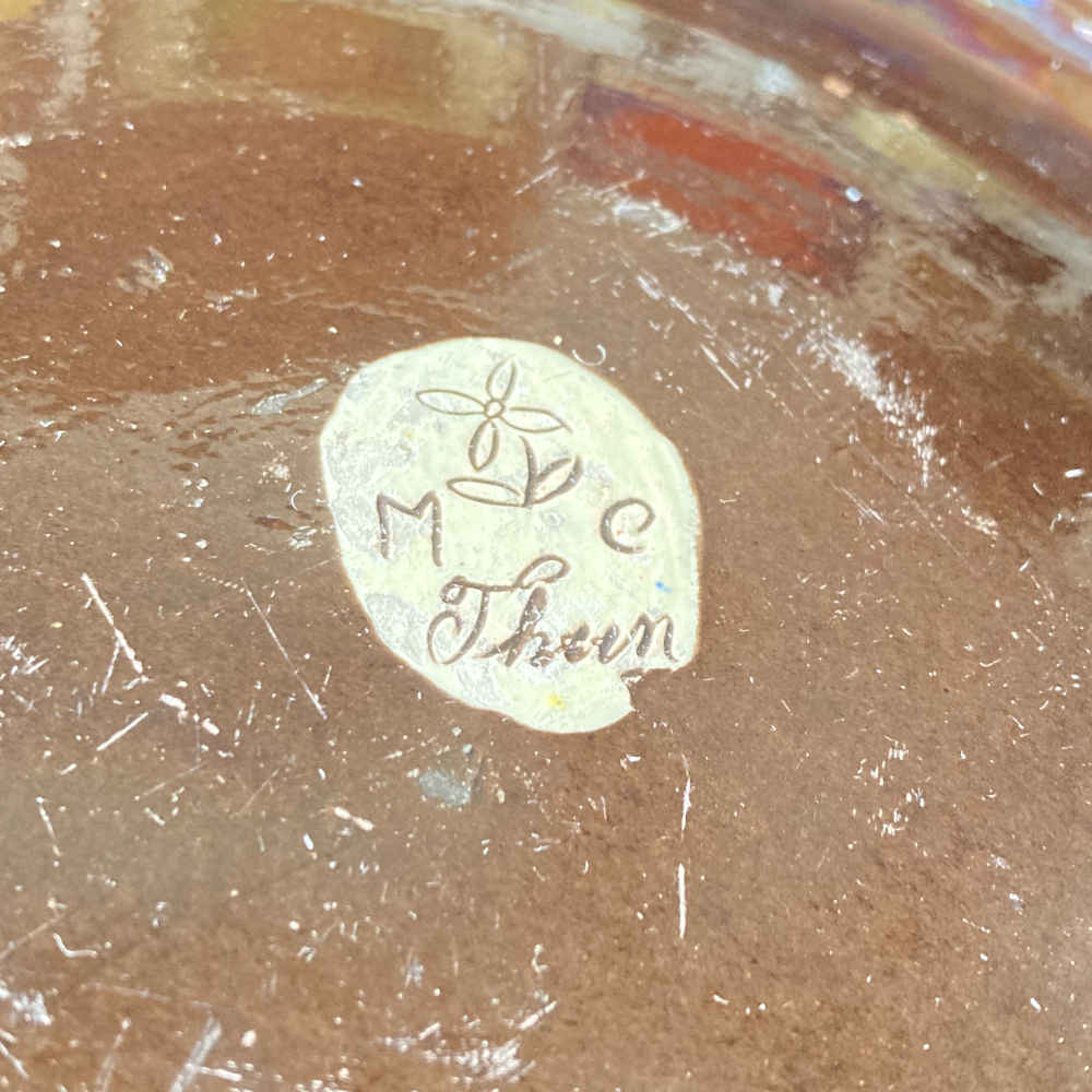 Signatur: hinten: M C, dazwischen eine Edelweiss-Blume, unten Thun; M C steht für Musée Céramique; vorne: L. Ritschard