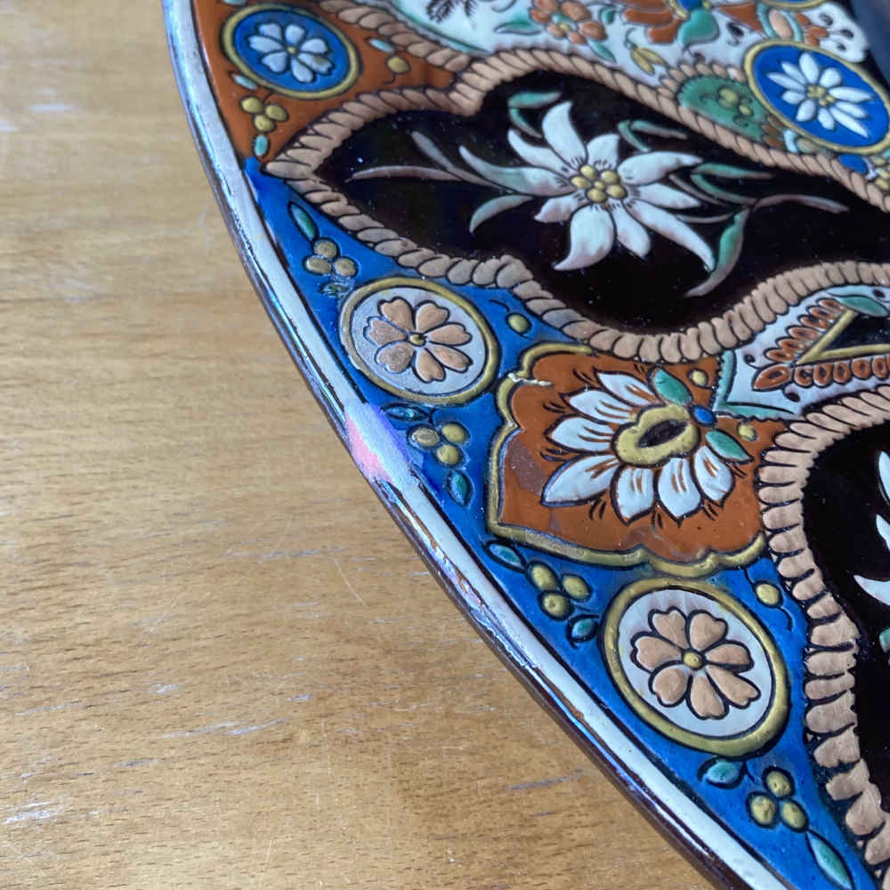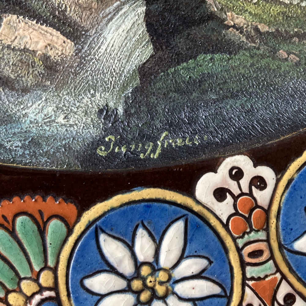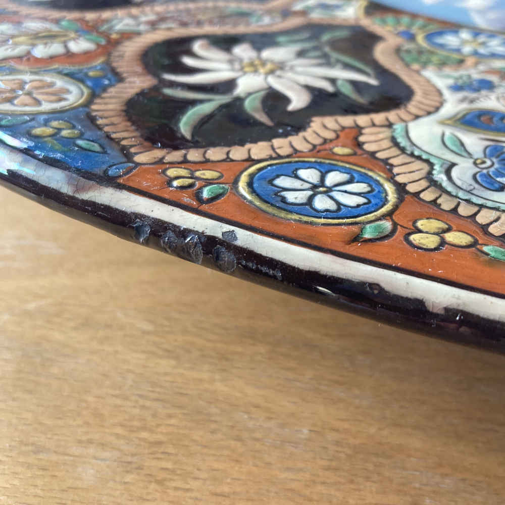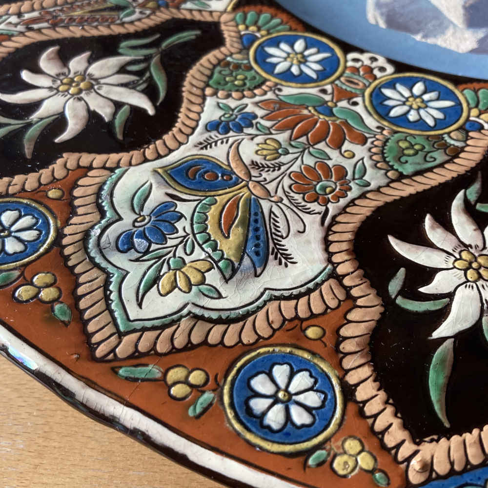 Signatur: hinten: M C, dazwischen eine Edelweiss-Blume, unten Thun; M C steht für Musée Céramique; vorne: L. Ritschard