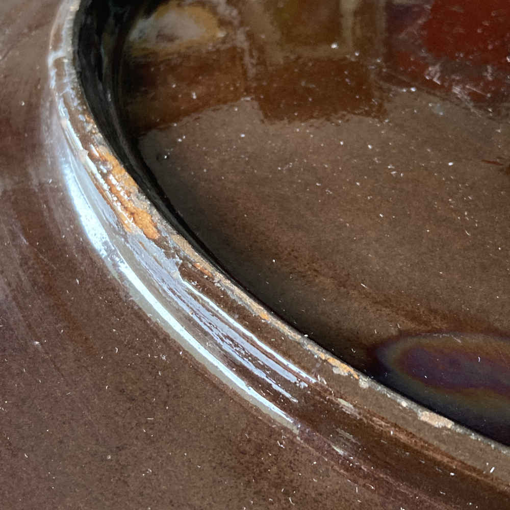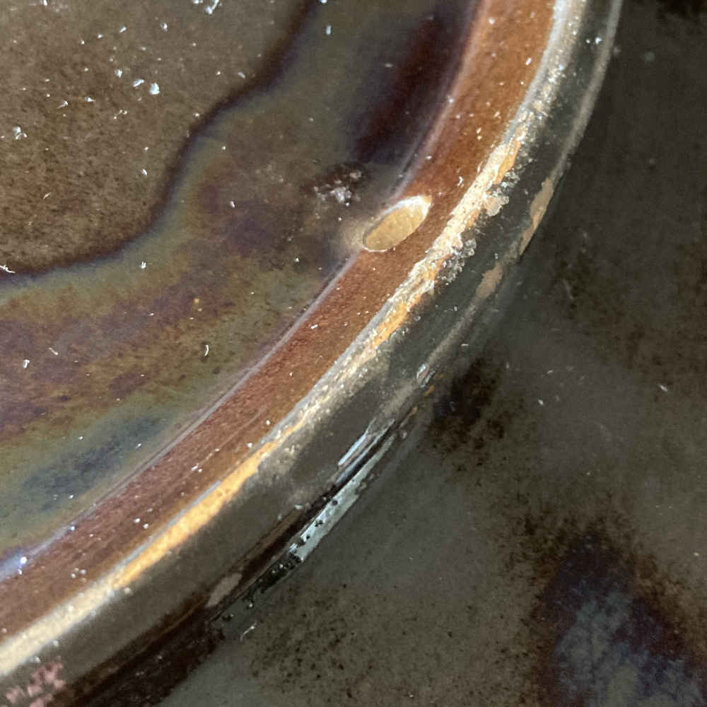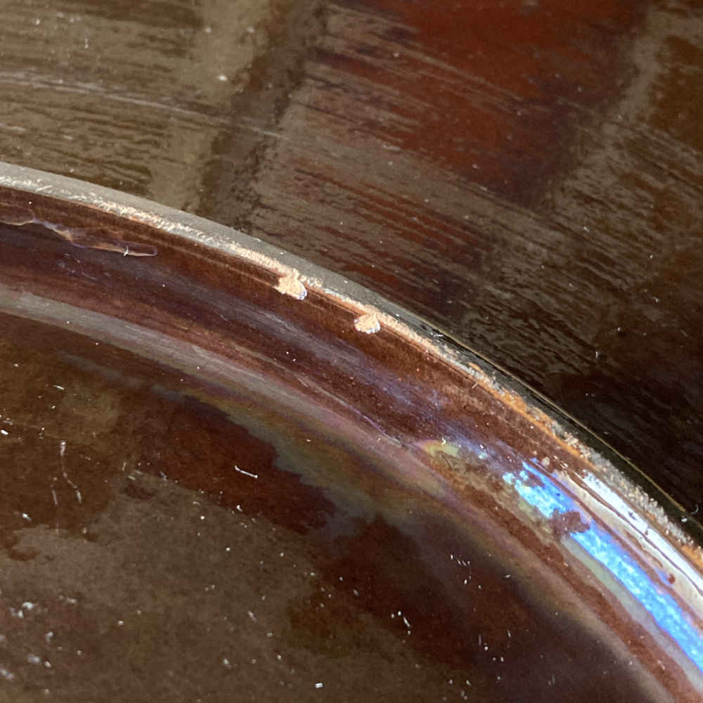 Zustand: teilweise Abplatzungen an Keramik; an einer Stelle Retuschierungen an Keramik; an einer Stelle Sprung im Rand der Keramik.