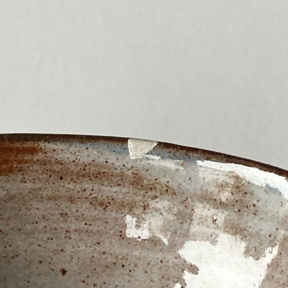 Zustand: Ein Chip am oberen Rand ist durch Gintsugi-Reparatur-Methode mit Silberlack repariert.